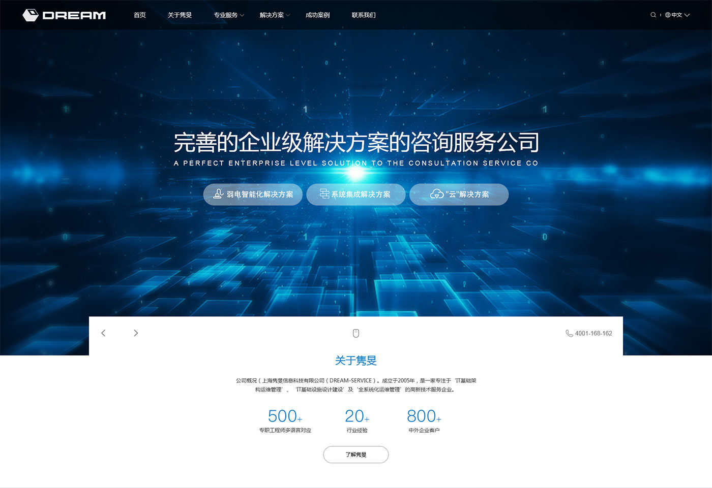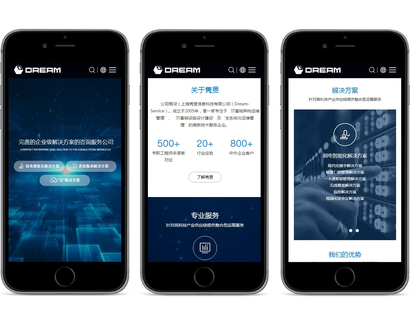助騰服務毅雋旻信息科技官網設計開發,通過與客戶的前期溝通和梳理,并通過整合以及重新編排內容,使信息的主次更顯而易見。你可以看到一個更簡約、直觀的但是卻不失內容和主題的完整的網站設計;用戶在瀏覽頁面頁面時能夠更簡單的找到自己想要的產品和內容。減的是“冗雜”,加的是更符合用戶體驗的整體視覺和主次明了的清晰架構。