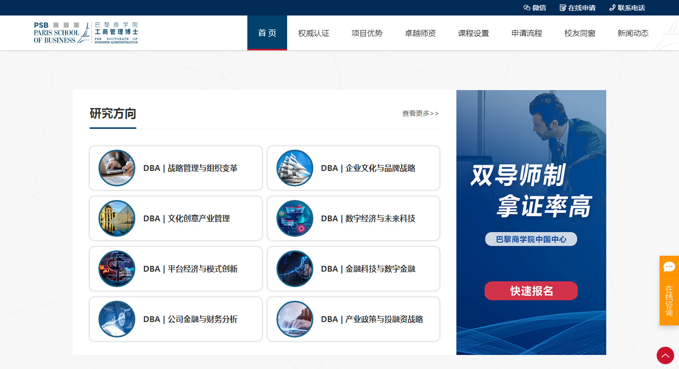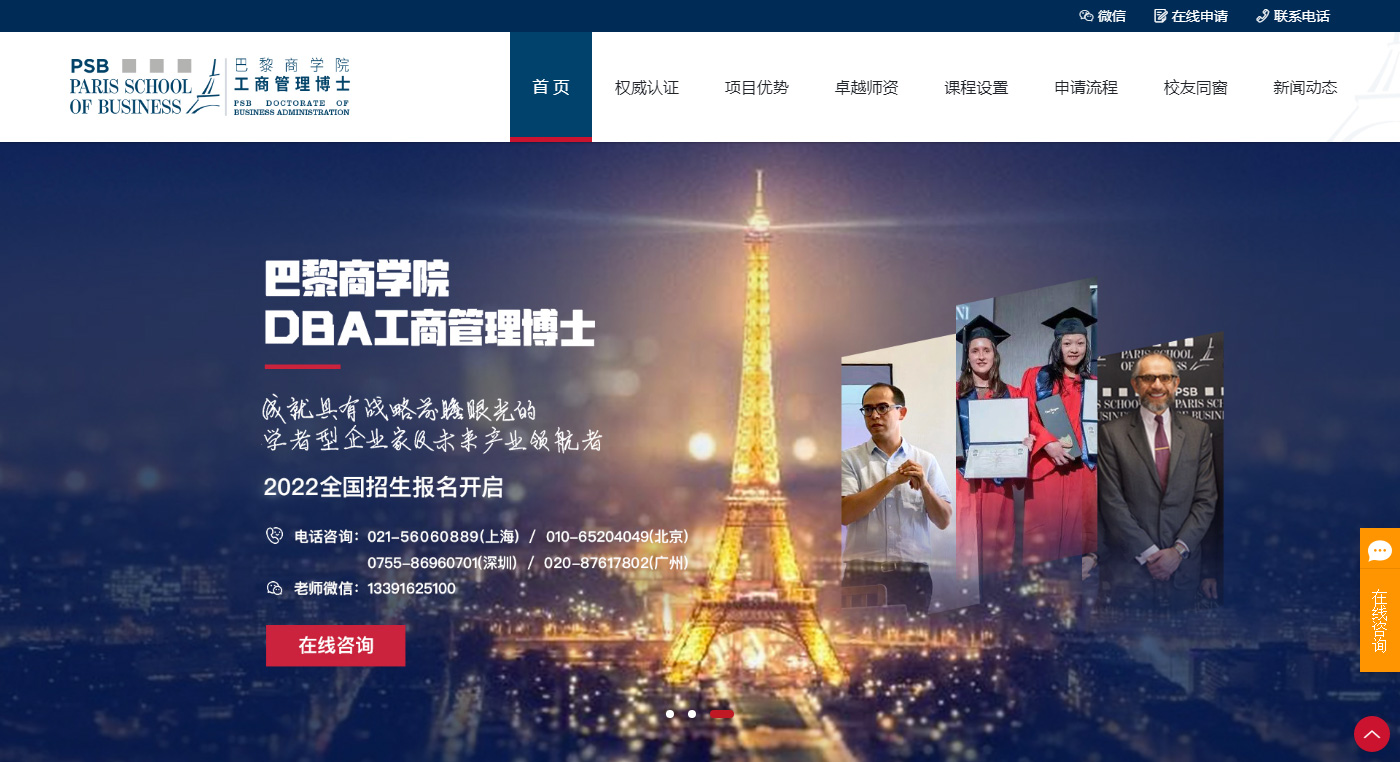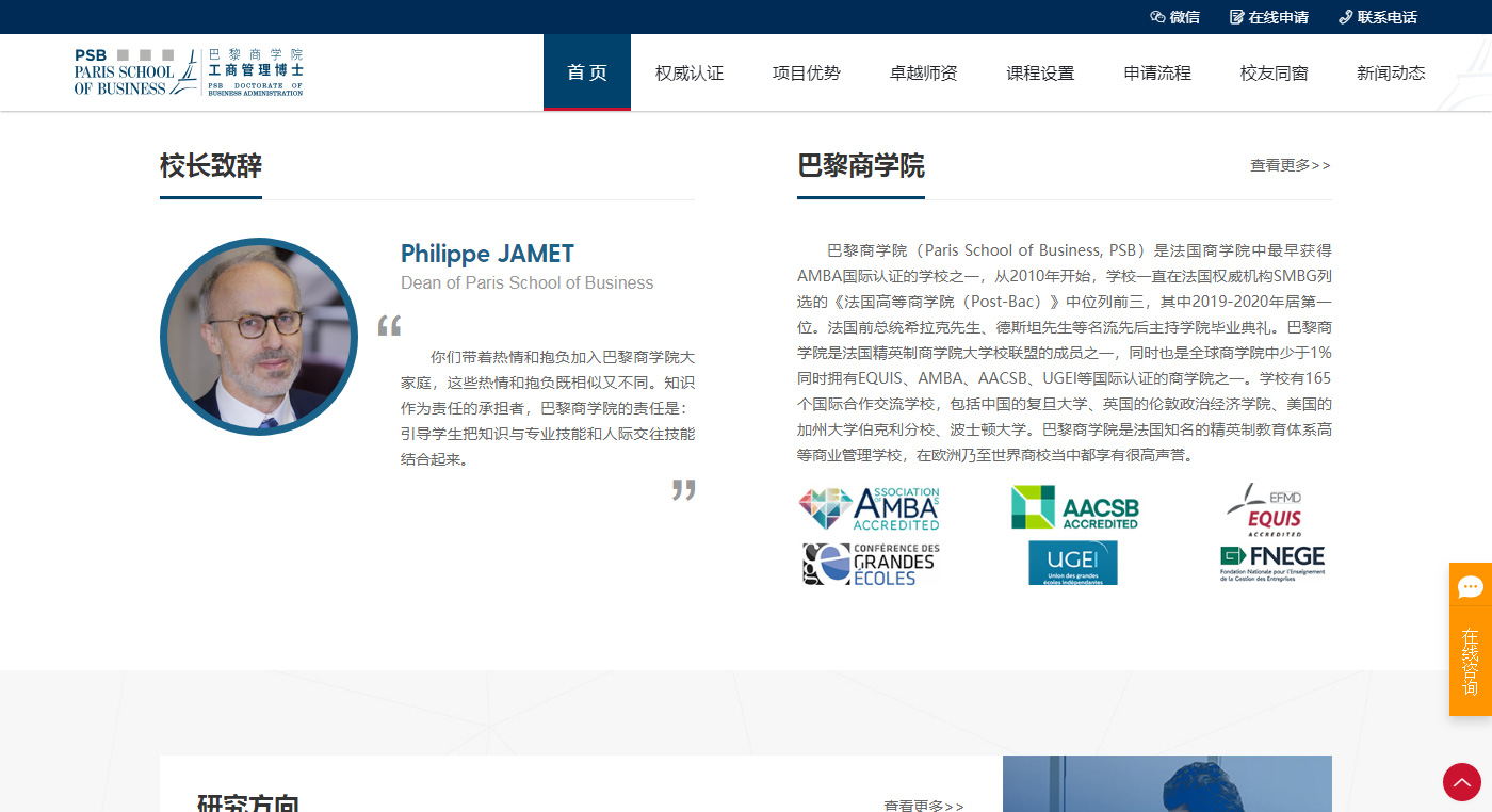 網站建設整體突出巴黎商學院品牌特點、介紹、用途,更具留學網站的特點,和重點突出。網站整體用色沿用LOGO的綠色色調為主色調,延展相似色調,更具形象的體現出學院的研究莊重。