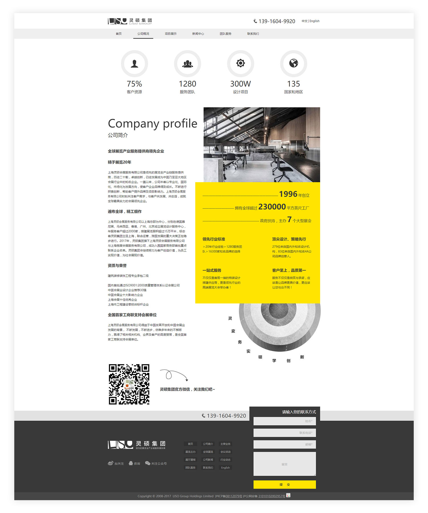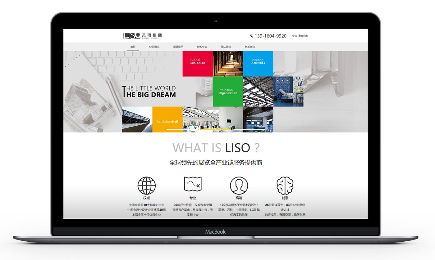 作為中國會展行業知名企業的展覽全產業鏈服務提供商;結構布局以凸顯主營業務,資助實力和權威案例為主。選擇沉穩的黑灰色作為基本色在網站大面積運用,并將黃色作為重要點綴,很好的表達了其展覽設計專業的屬性和時尚理念。