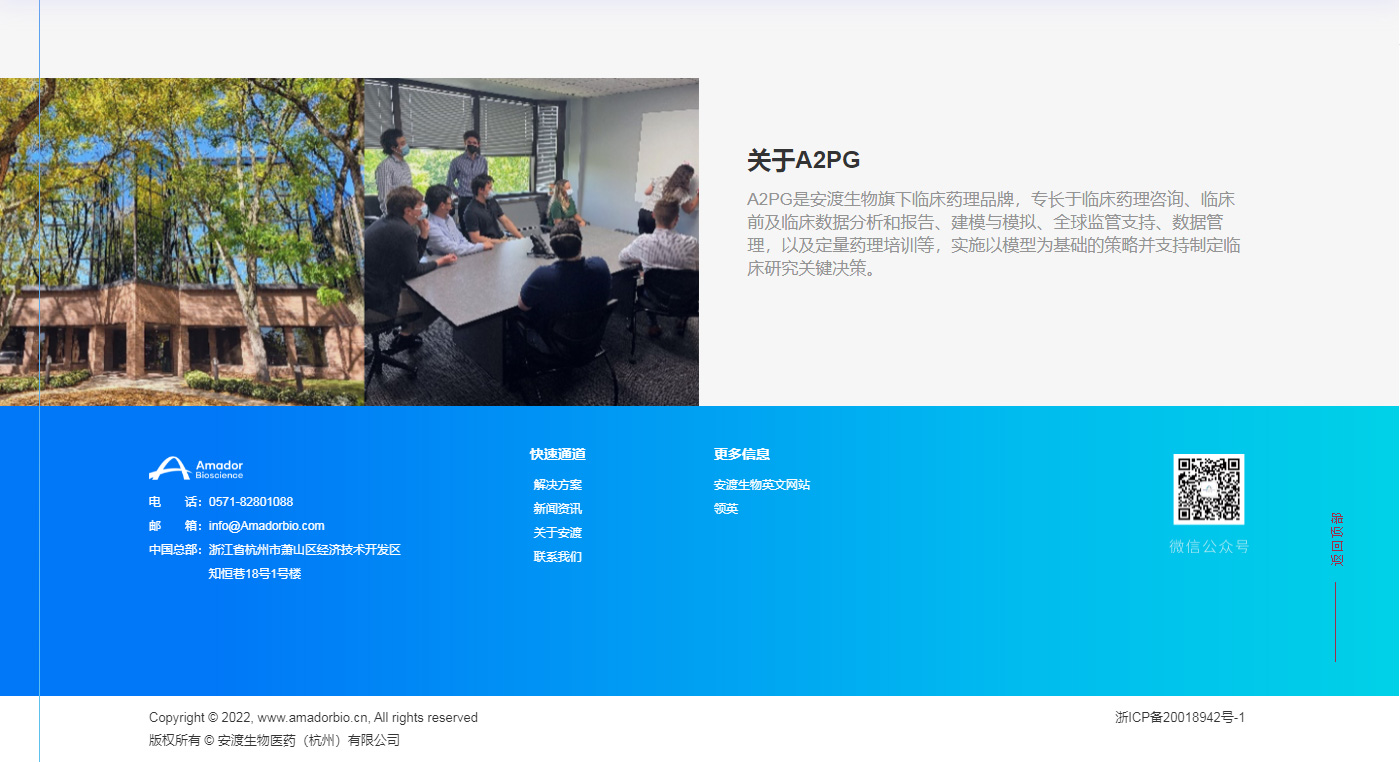 安渡生物是全球領先的轉化和臨床開發新一代CRO。作為創新藥成功研發的優選合作伙伴,安渡生物為新藥開發在中國和歐美提供符合國際標準的轉化科學,定量藥理,監管申報和臨床開發全鏈條服務,包括從臨床前到上市的臨床開發策略和執行,科學地“選劑量、選靶點、選病人”,結合全球化執行質量標準,提高新藥研發成功率。客戶群體涵蓋從頂尖的初創生物科技公司到跨國制藥企業。截至目前,安渡團隊已經成功為境內外客戶在歐美完成超過210+項入市申報(NDA, BLA, MAA)。
