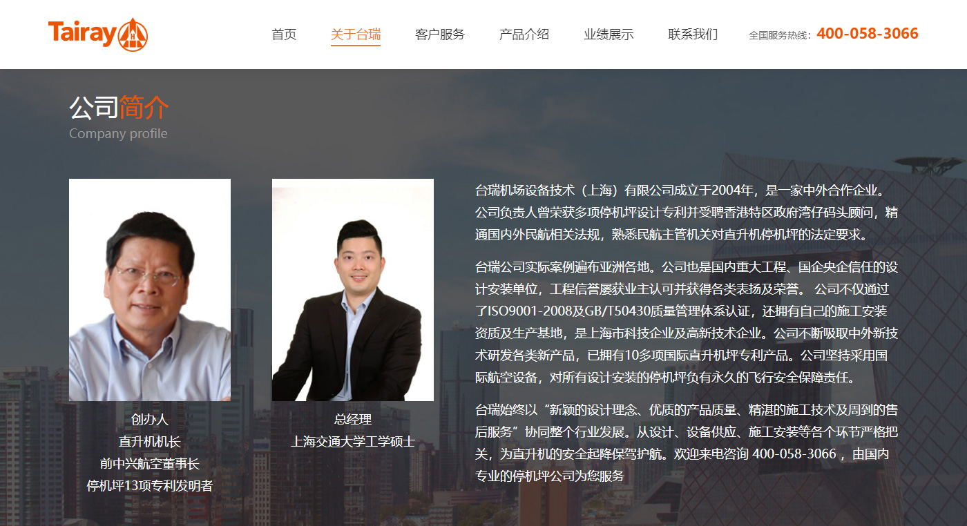 臺瑞機場設備技術(上海)有限公司成立于2004年,是一家中外合作企業。公司負責人曾榮獲多項停機坪設計專利并受聘香港特區政府灣仔碼頭顧問,精通國內外民航相關法規,熟悉民航主管機關對直升機停機坪的法定要求。