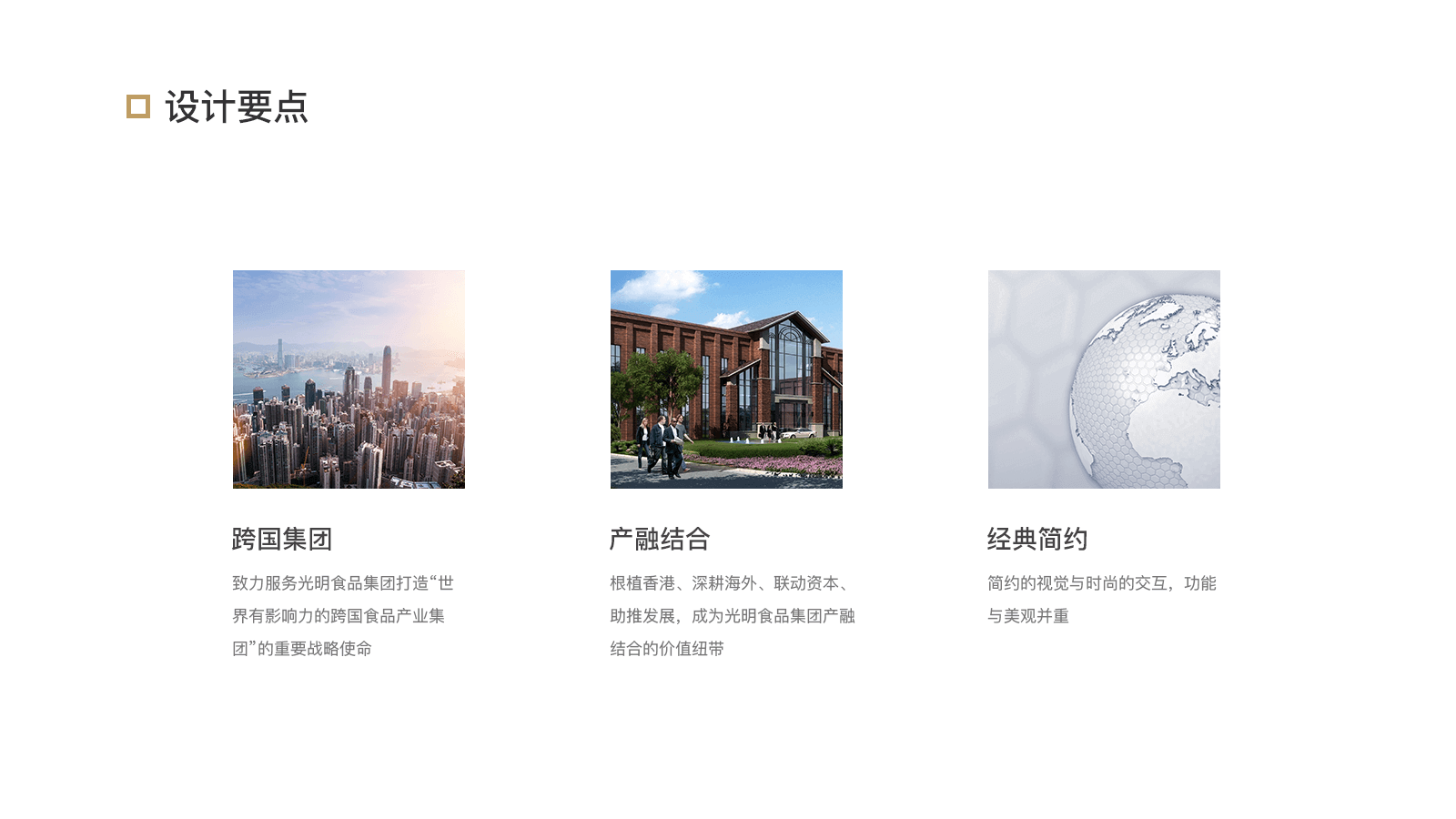 助騰與光明食品國際深入溝通對接,形成了光明食品國際的主要業(yè)務、戰(zhàn)略愿景、企業(yè)文化的深刻理解,將光明食品國際專業(yè)、誠信、創(chuàng)新、國際化的品牌調性融入網(wǎng)站設計。