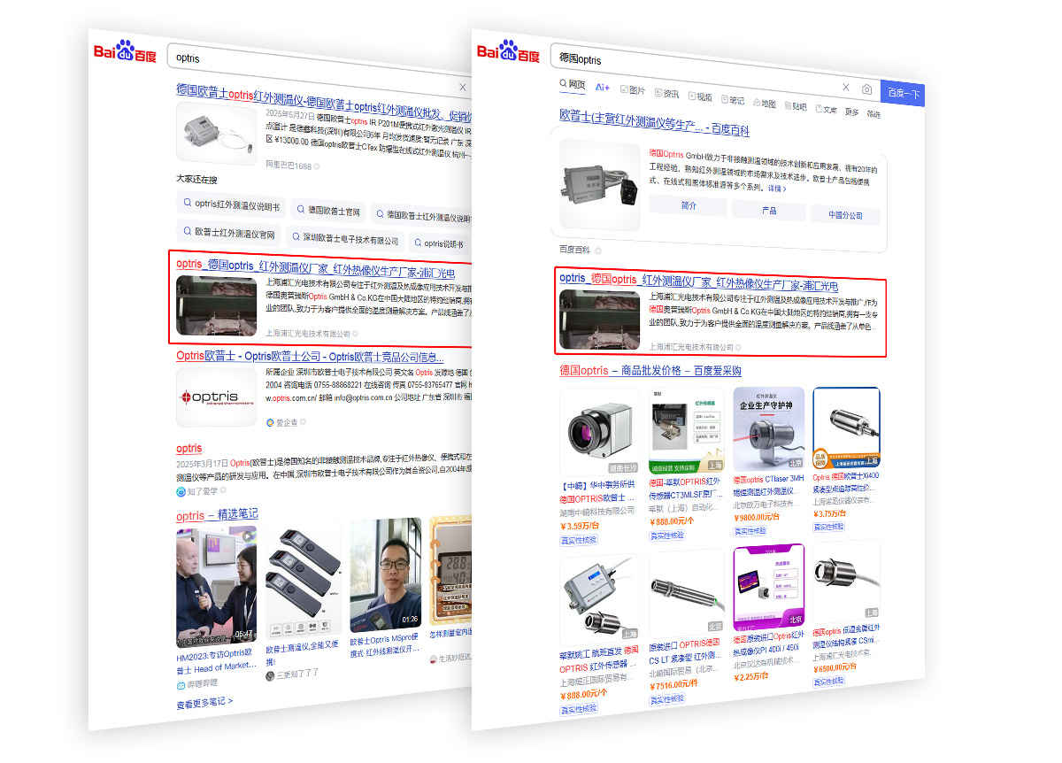 上海助騰為德國Optris中國區合作伙伴量身打造專業SEO優化方案,聚焦“德國Optris”、“紅外測溫儀”、“熱成像儀”、“測溫系統”等核心品牌關鍵詞,全面提升品牌在搜索引擎中的自然排名與行業曝光度,通過精準關鍵詞布局、高質量技術內容建設及網站結構優化,助力Optris在中國市場的紅外測溫領域持續領跑,進一步鞏固其在工業測溫與熱成像行業的領先地位。