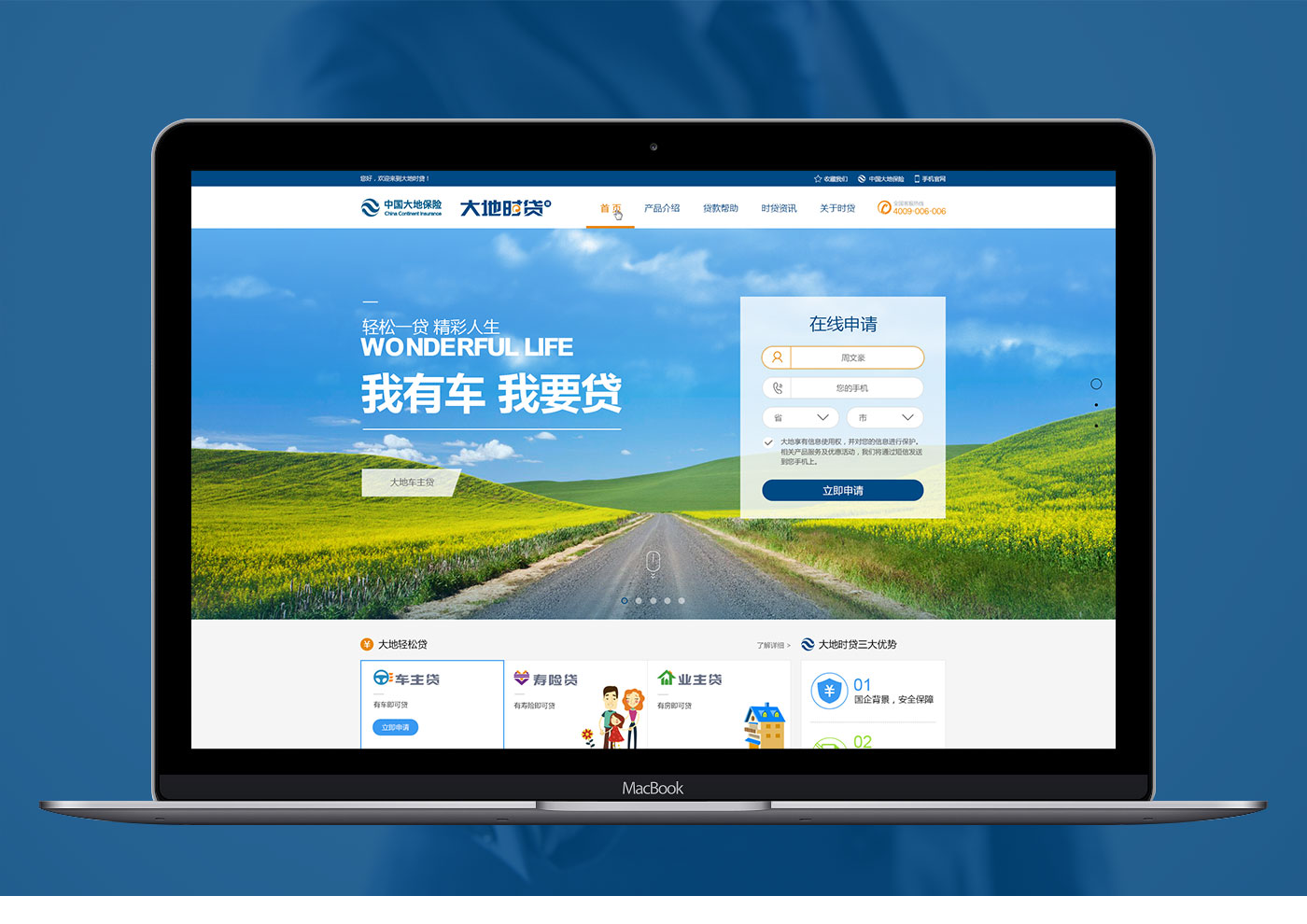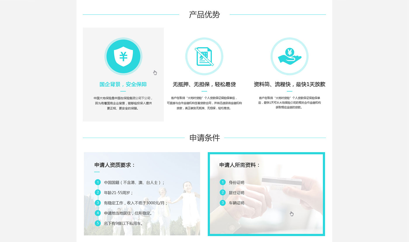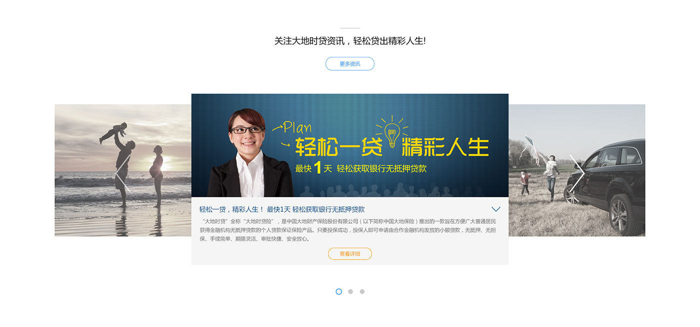 在前期的項目溝通和執行上,助騰團隊對此項目投入了空前的精力和創作熱情。手機移動微官網我們先從前期的項目深入調研到原型策劃,再到UI界面設計和前端程序開發上都有很大的突破和創新。有趣的交互實現,讓貸款申請變得輕松簡單,大地電腦版官網布局清新明了,行業屬性明顯直觀,能讓用戶快速找到貸款申請入口完成信息提交。