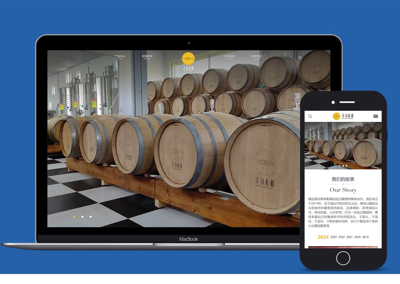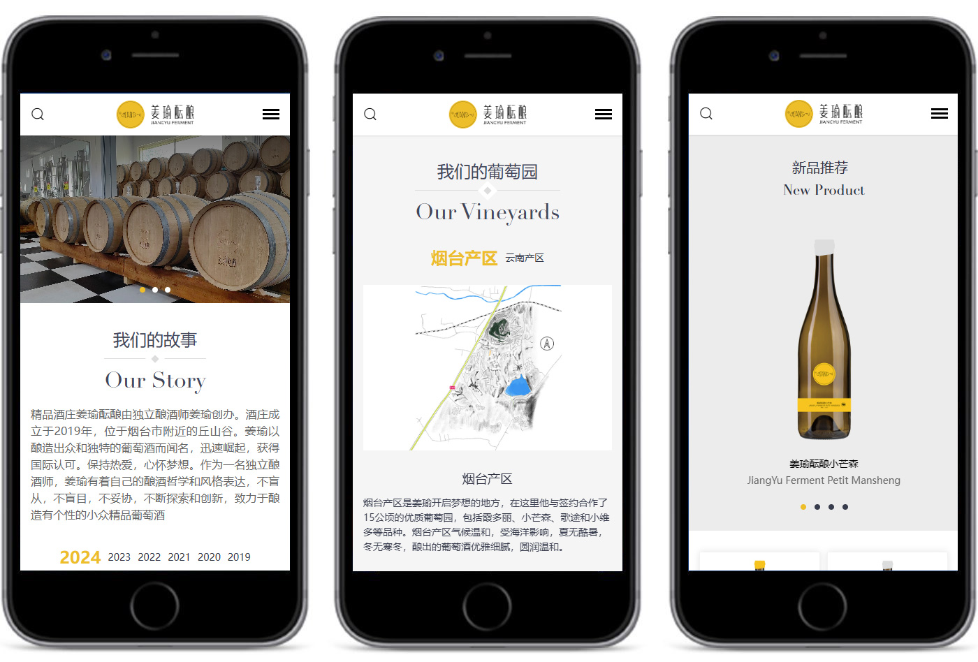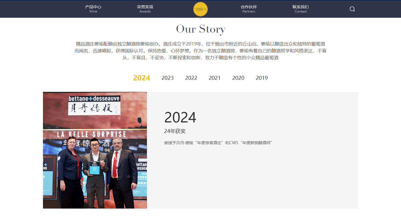 助騰為獨立精品酒莊「姜瑜醞釀」打造品牌形象官網,以簡約設計呈現酒莊風土底蘊與釀酒哲學,通過沉浸式視覺敘事與流暢用戶體驗,傳遞小眾精品葡萄酒的獨特魅力。