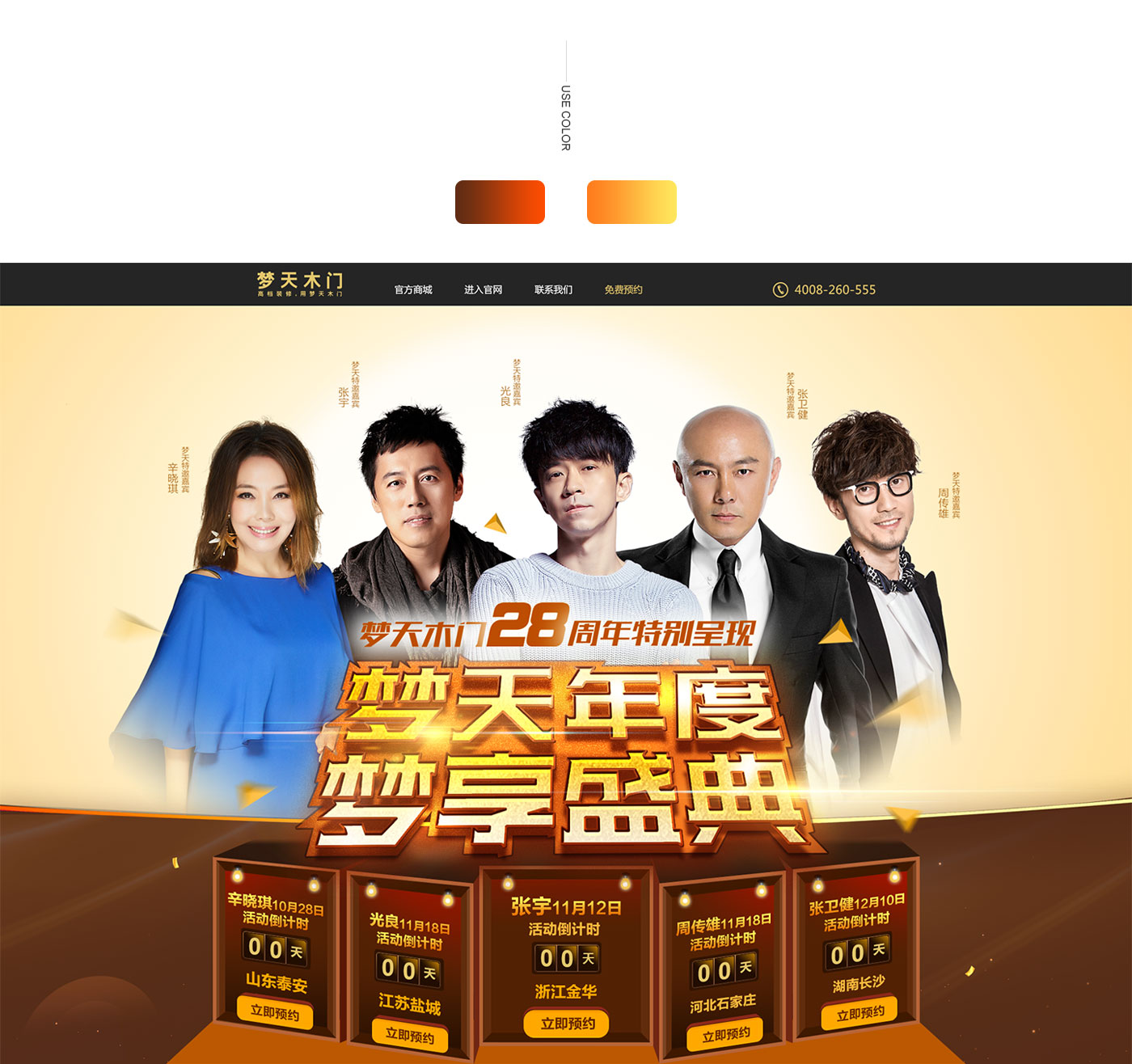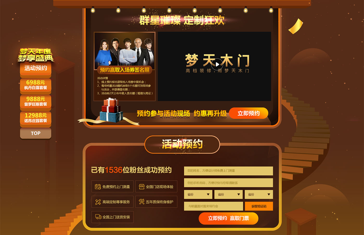 圍繞夢天年度夢享盛典活動,發起的一場預約現場參加夢天年度盛典。邀請多位明星出席活動,發布明星產品,專題以年度盛典為主題頁面突出盛典氣氛。