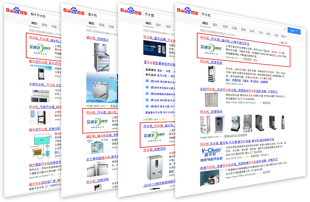 | 開水機 | 百度 | 項目操作之前 網站月均訪問UV: 0左右 項目操作之后 網站月均訪問UV: 1853左右 |
