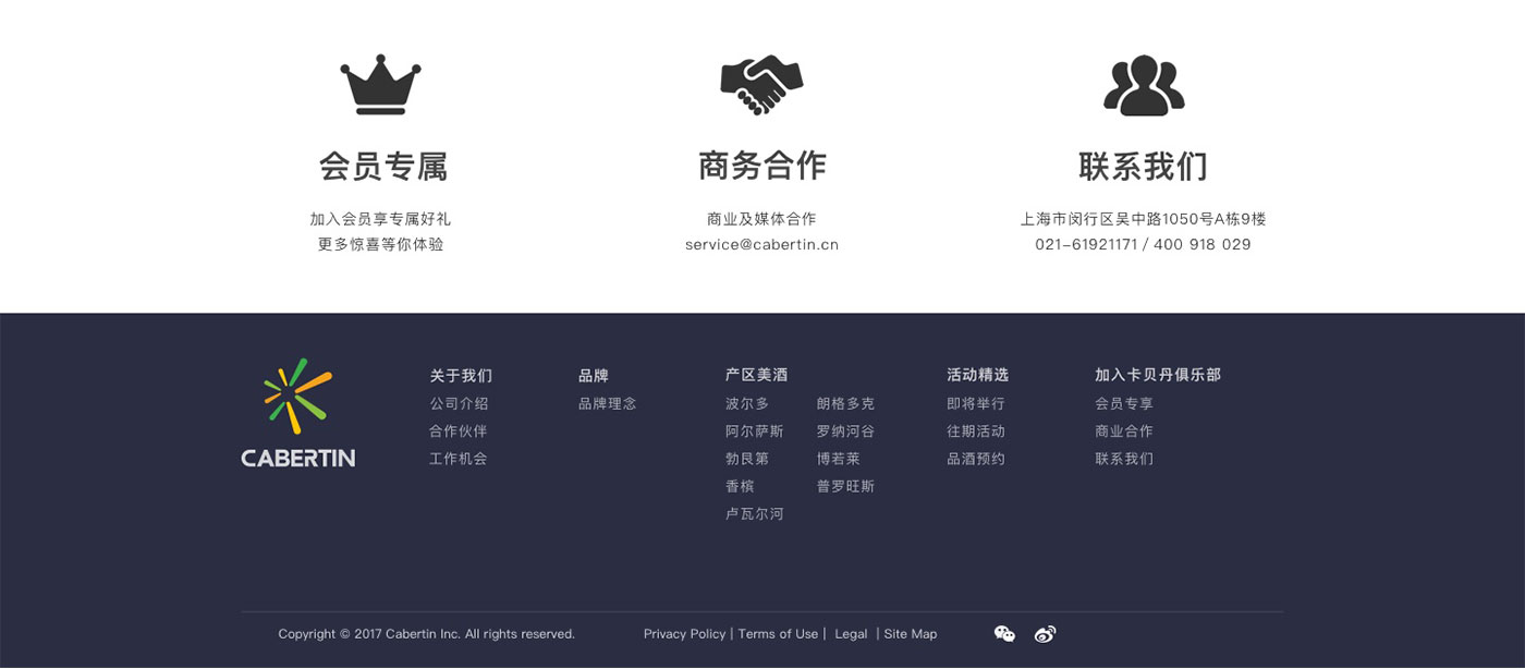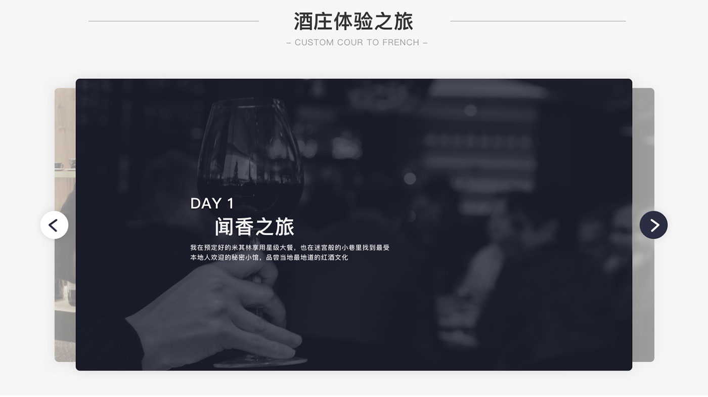 卡貝丹秉承以專心的服務,專一的品質,專注的態度,專營法國精品葡萄酒,并不斷探索,以卓越的服務與產品品質,為顧客和合作伙伴提供更好的服務為宗旨。網站的整體風格以體現品牌的實力以及產品的多樣性,高品質感為主,并通過大圖的處理和文字精準的定位來強化卡貝丹紅酒品質感和高性價比,使得網站整體呈現的視覺效果不僅高端、大氣,而且更顯國際化。