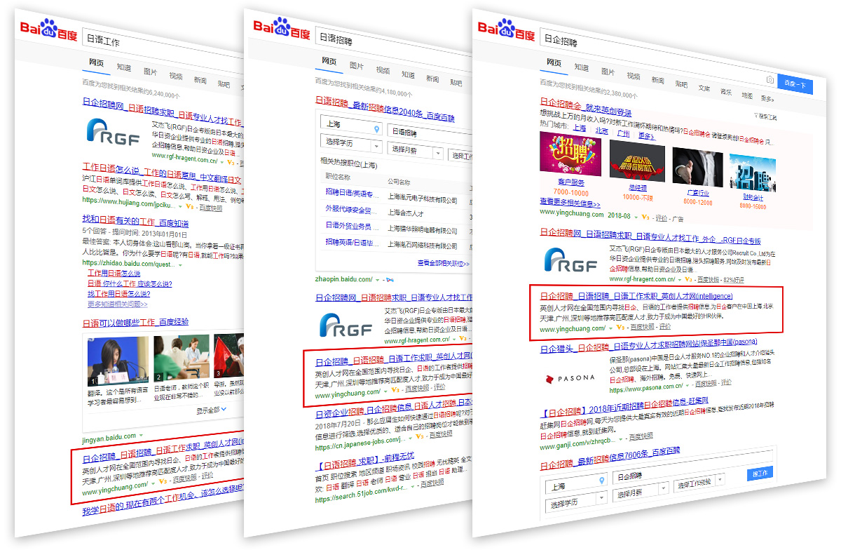 | 日企招聘 | 百度 | 項目操作之前 網站月均訪問UV: 30667左右 項目操作之后 網站月均訪問UV: 65889左右 |